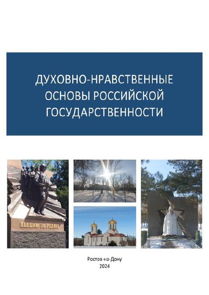 Духовно-нравственные основы российской государственности : учебное пособие / С. Н. Астапов, Л. Г. Бабахова, Т. А. Бондаренко [и др.] ; под редакцией Е. Е. Несмеянова, О. А. Орленко. — Ростов-на-Дону : Донской государственный технический университет, 2024. — 200 c. — ISBN 978-5-7890-2207-8. — Текст : электронный // Цифровой образовательный ресурс IPR SMART : [сайт]. — URL: https://www.iprbookshop.ru/150047.html (дата обращения: 15.04.2025). — Режим доступа: для авторизир. пользователей