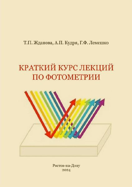 Жданова, Т. П. Краткий курс лекций по фотометрии : учебное пособие / Т. П. Жданова, А. П. Кудря, Г. Ф. Лемешко. — Ростов-на-Дону : Донской государственный технический университет, 2024. — 105 c. — ISBN 978-5-7890-2259-7. — Текст : электронный // Цифровой образовательный ресурс IPR SMART : [сайт]. — URL: https://www.iprbookshop.ru/150054.html (дата обращения: 15.04.2025). — Режим доступа: для авторизир. пользователей