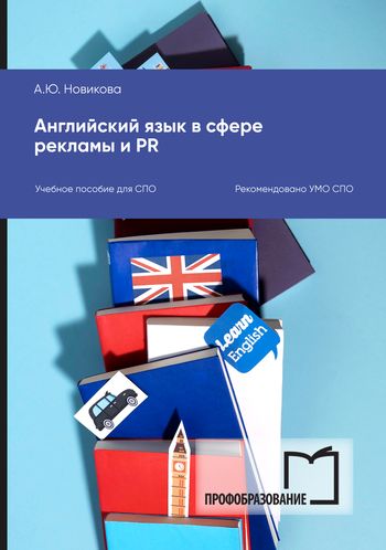 Новикова А.Ю. Английский язык в сфере рекламы и PR [Электронный ресурс]: учебное пособие для СПО/ Новикова А.Ю.— Электрон. текстовые данные.— Саратов: Профобразование, 2025.— 88 c.— Режим доступа: https://ipr-smart.ru/150103.— IPR SMART, по паролю