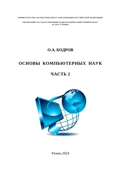 Бодров, О. А. Основы компьютерных наук. Ч.2 : учебное пособие / О. А. Бодров. — Рязань : Рязанский государственный радиотехнический университет, 2024. — 124 c. — Текст : электронный // Цифровой образовательный ресурс IPR SMART : [сайт]. — URL: https://www.iprbookshop.ru/150307.html (дата обращения: 21.04.2025). — Режим доступа: для авторизир. пользователей