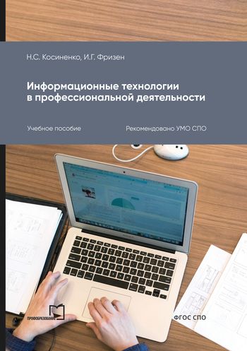 Косиненко, Н. С. Информационные технологии в профессиональной деятельности : учебное пособие для СПО / Н. С. Косиненко, И. Г. Фризен. — Саратов : Профобразование, 2025. — 270 c. — ISBN 978-5-4488-1575-1. — Текст : электронный // Цифровой образовательный ресурс IPR SMART : [сайт]. — URL: https://www.iprbookshop.ru/150790.html (дата обращения: 06.05.2025). — Режим доступа: для авторизир. пользователей