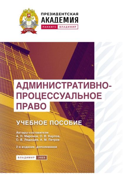 Административно-процессуальное право : учебное пособие / А. Н. Миронов, О. В. Карпов, С. В. Ледащев, А. М. Петров. — 2-е изд. — Владимир : Владимирский филиал РАНХиГС, 2023. — 188 c. — ISBN 978-5-907389-93-9. — Текст : электронный // Цифровой образовательный ресурс IPR SMART : [сайт]. — URL: https://www.iprbookshop.ru/150841.html (дата обращения: 13.05.2025). — Режим доступа: для авторизир. пользователей