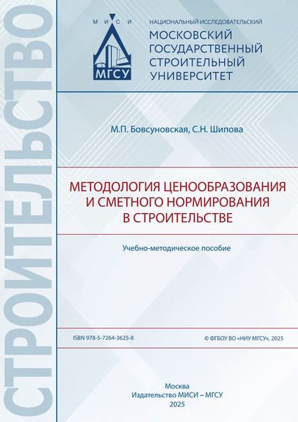 Бовсуновская, М. П. Методология ценообразования и сметного нормирования в строительстве : учебно-методическое пособие / М. П. Бовсуновская, С. Н. Шипова. — Москва : МИСИ-МГСУ, ЭБС АСВ, 2025. — 85 c. — ISBN 978-5-7264-3625-8. — Текст : электронный // Цифровой образовательный ресурс IPR SMART : [сайт]. — URL: https://www.iprbookshop.ru/151114.html (дата обращения: 20.05.2025). — Режим доступа: для авторизир. пользователей
