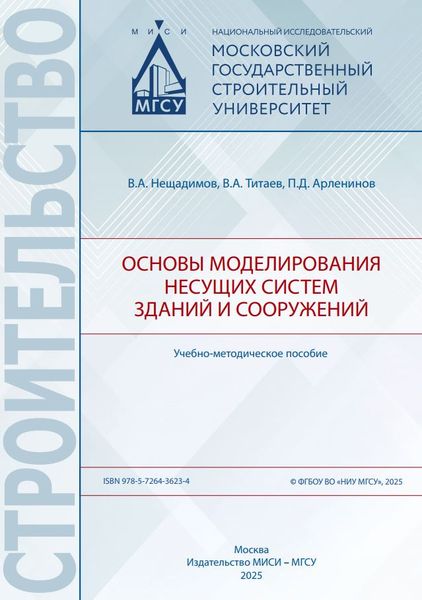 Нещадимов, В. А. Основы моделирования несущих систем зданий и сооружений : учебно-методическое пособие / В. А. Нещадимов, В. А. Титаев, П. Д. Арленинов. — Москва : МИСИ-МГСУ, ЭБС АСВ, 2025. — 110 c. — ISBN 978-5-7264-3623-4. — Текст : электронный // Цифровой образовательный ресурс IPR SMART : [сайт]. — URL: https://www.iprbookshop.ru/151117.html (дата обращения: 20.05.2025). — Режим доступа: для авторизир. пользователей