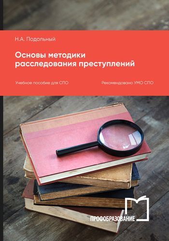 Подольный, Н. А. Основы методики расследования преступлений : учебное пособие для СПО / Н. А. Подольный. — Саратов, Москва : Профобразование, Ай Пи Ар Медиа, 2025. — 65 c. — ISBN 978-5-4488-2561-3, 978-5-4497-4449-4. — Текст : электронный // Цифровой образовательный ресурс IPR SMART : [сайт]. — URL: https://www.iprbookshop.ru/151410.html (дата обращения: 25.06.2025). — Режим доступа: для авторизир. пользователей