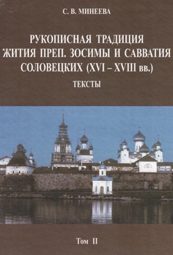 Минеева, С. В. Рукописная традиция Жития преп. Зосимы и Савватия Соловецких (XVI-XVIII вв.). Том II. Тексты / С. В. Минеева. — Москва : Языки славянских культур, 2001. — 504 c. — ISBN 5-7859-0214-1. — Текст : электронный // Цифровой образовательный ресурс IPR SMART : [сайт]. — URL: https://www.iprbookshop.ru/15155.html (дата обращения: 15.10.2025). — Режим доступа: для авторизир. пользователей