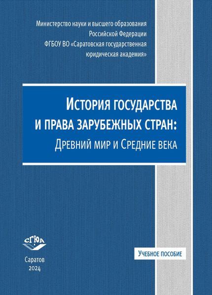 История государства и права зарубежных стран: Древний мир и Средние века : учебное пособие / И. В. Воронкова, Л. С. Гимишян, П. Ю. Мельников [и др.] ; под редакцией С. Н. Туманова. — 2-е изд. — Саратов : Издательство Саратовской государственной юридической академии, 2024. — 316 c. — ISBN 978-5-7924-2029-8. — Текст : электронный // Цифровой образовательный ресурс IPR SMART : [сайт]. — URL: https://www.iprbookshop.ru/151653.html (дата обращения: 09.06.2025). — Режим доступа: для авторизир. пользователей
