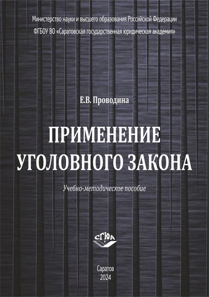 Проводина, Е. В. Применение уголовного закона : учебно-методическое пособие / Е. В. Проводина. — Саратов : Издательство Саратовской государственной юридической академии, 2024. — 60 c. — ISBN 978-5-7924-2098-4. — Текст : электронный // Цифровой образовательный ресурс IPR SMART : [сайт]. — URL: https://www.iprbookshop.ru/151676.html (дата обращения: 09.06.2025). — Режим доступа: для авторизир. пользователей