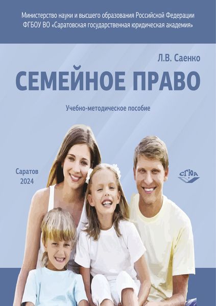 Саенко, Л. В. Семейное право : учебно-методическое пособие / Л. В. Саенко. — Саратов : Издательство Саратовской государственной юридической академии, 2024. — 251 c. — ISBN 978-5-7924-2012-0. — Текст : электронный // Цифровой образовательный ресурс IPR SMART : [сайт]. — URL: https://www.iprbookshop.ru/151688.html (дата обращения: 09.06.2025). — Режим доступа: для авторизир. пользователей