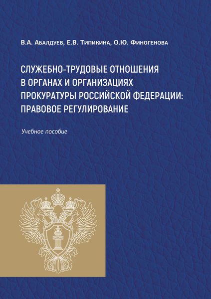 Абалдуев, В. А. Служебно-трудовые отношения в органах и организациях прокуратуры Российской Федерации: правовое регулирование : учебное пособие / В. А. Абалдуев, Е. В. Типикина, О. Ю. Финогенова ; под редакцией В. А. Абалдуева. — Саратов : Издательство Саратовской государственной юридической академии, 2024. — 220 c. — ISBN 978-5-7924-2072-4. — Текст : электронный // Цифровой образовательный ресурс IPR SMART : [сайт]. — URL: https://www.iprbookshop.ru/151689.html (дата обращения: 09.06.2025). — Режим доступа: для авторизир. пользователей