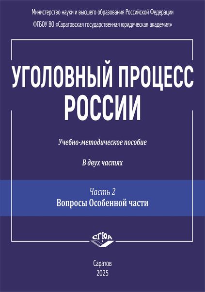 Уголовный процесс России. В 2 частях. Ч.2. Вопросы Особенной части : учебно-методическое пособие / М. А. Баранова, Д. В. Ванин, В. Л. Григорян [и др.] ; под редакцией Н. С. Мановой. — Саратов : Издательство Саратовской государственной юридической академии, 2025. — 348 c. — ISBN 978-5-7924-2065-6, 978-5-7924-2141-7 (ч.2). — Текст : электронный // Цифровой образовательный ресурс IPR SMART : [сайт]. — URL: https://www.iprbookshop.ru/151698.html (дата обращения: 09.06.2025). — Режим доступа: для авторизир. пользователей