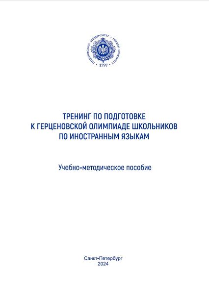 Тренинг по подготовке к Герценовской олимпиаде школьников по иностранным языкам : учебно-методическое пособие / И. В. Алексеева, М. Н. Гузь, Н. В. Иванова [и др.] ; под редакцией И. В. Фроловой. — Санкт-Петербург : Издательство РГПУ им. А. И. Герцена, 2024. — 96 c. — ISBN 978-5-8064-3562-1. — Текст : электронный // Цифровой образовательный ресурс IPR SMART : [сайт]. — URL: https://www.iprbookshop.ru/152290.html (дата обращения: 26.06.2025). — Режим доступа: для авторизир. пользователей