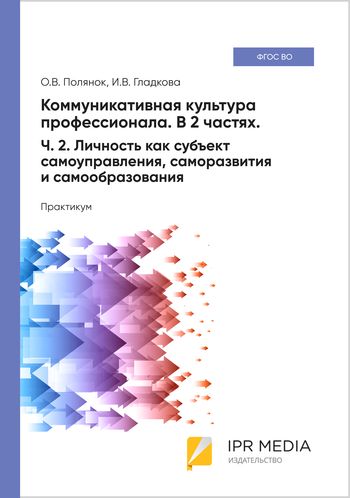 Полянок, О. В. Коммуникативная культура профессионала. В 2 частях. Ч. 2. Личность как субъект самоуправления, саморазвития и самообразования : практикум / О. В. Полянок, И. В. Гладкова. — Москва : Ай Пи Ар Медиа, 2025. — 198 c. — ISBN 978-5-4497-4514-9 (ч. 2), 978-5-4497-4512-5. — Текст : электронный // Цифровой образовательный ресурс IPR SMART : [сайт]. — URL: https://www.iprbookshop.ru/152398.html (дата обращения: 04.07.2025). — Режим доступа: для авторизир. пользователей