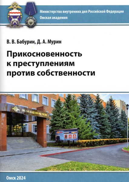 Бабурин, В. В. Прикосновенность к преступлениям против собственности : монография / В. В. Бабурин, Д. А. Мурин. — Омск : Омская академия МВД России, 2024. — 152 c. — ISBN 978-5-88651-864-1. — Текст : электронный // Цифровой образовательный ресурс IPR SMART : [сайт]. — URL: https://www.iprbookshop.ru/152507.html (дата обращения: 12.07.2025). — Режим доступа: для авторизир. пользователей