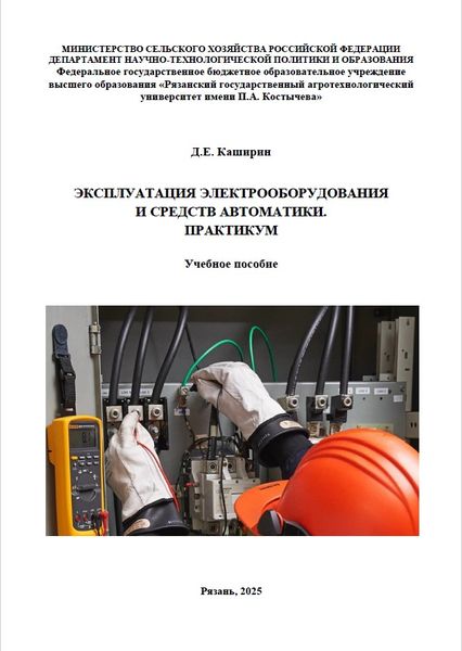 Каширин, Д. Е. Эксплуатация электрооборудования и средств автоматики. Практикум : учебное пособие / Д. Е. Каширин. — Рязань : Рязанский государственный агротехнологический университет имени П.А. Костычева, 2025. — 210 c. — Текст : электронный // Цифровой образовательный ресурс IPR SMART : [сайт]. — URL: https://www.iprbookshop.ru/152608.html (дата обращения: 18.07.2025). — Режим доступа: для авторизир. пользователей