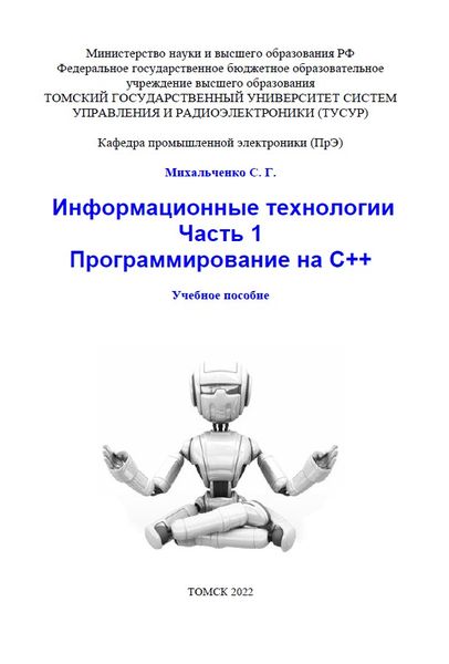 Михальченко, С. Г. Информационные технологии. Ч.1. Программирование на С++ : учебное пособие / С. Г. Михальченко. — Томск : Томский государственный университет систем управления и радиоэлектроники, 2022. — 186 c. — Текст : электронный // Цифровой образовательный ресурс IPR SMART : [сайт]. — URL: https://www.iprbookshop.ru/152801.html (дата обращения: 29.07.2025). — Режим доступа: для авторизир. пользователей
