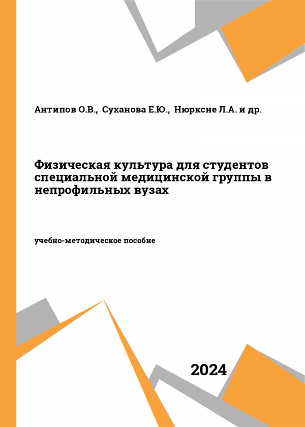 Физическая культура для студентов специальной медицинской группы в непрофильных вузах : учебно-методическое пособие / О. В. Антипов, Е. Ю. Суханова, Л. А. Нюрксне, Ю. Л. Першин. — Москва : Академия Принт, 2024. — 116 c. — ISBN 978-5-6053186-1-3. — Текст : электронный // Цифровой образовательный ресурс IPR SMART : [сайт]. — URL: https://www.iprbookshop.ru/153397.html (дата обращения: 21.08.2025). — Режим доступа: для авторизир. пользователей