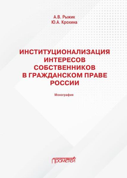 Рыжик, А. В. Институционализация интересов собственников в гражданском праве России : монография / А. В. Рыжик, Ю. А. Крохина. — Москва : Прометей, 2023. — 366 c. — ISBN 978-5-00172-557-2. — Текст : электронный // Цифровой образовательный ресурс IPR SMART : [сайт]. — URL: https://www.iprbookshop.ru/153425.html (дата обращения: 26.08.2025). — Режим доступа: для авторизир. пользователей