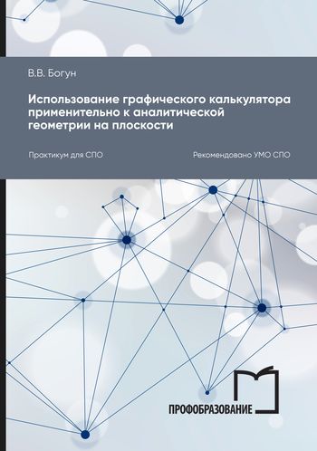 Богун, В. В. Использование графического калькулятора применительно к аналитической геометрии на плоскости : практикум для СПО / В. В. Богун. — 2-е изд. — Саратов, Москва : Профобразование, Ай Пи Ар Медиа, 2026. — 113 c. — ISBN 978-5-4488-0896-8, 978-5-4497-0732-1. — Текст : электронный // Цифровой образовательный ресурс IPR SMART : [сайт]. — URL: https://www.iprbookshop.ru/153617.html (дата обращения: 04.09.2025). — Режим доступа: для авторизир. пользователей