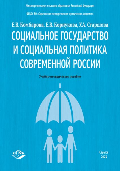 Комбарова, Е. В. Социальное государство и социальная политика современной России : учебно-методическое пособие / Е. В. Комбарова, Е. В. Корнукова, У. А. Старшова. — Саратов : Издательство Саратовской государственной юридической академии, 2023. — 60 c. — ISBN 978-5-7924-1944-5. — Текст : электронный // Цифровой образовательный ресурс IPR SMART : [сайт]. — URL: https://www.iprbookshop.ru/154030.html (дата обращения: 09.09.2025). — Режим доступа: для авторизир. пользователей
