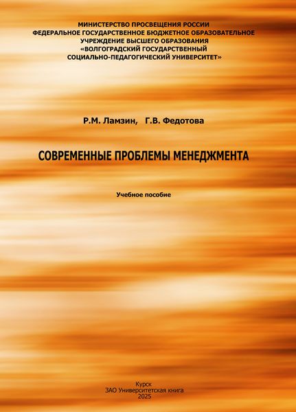 Ламзин, Р. М. Современные проблемы менеджмента : учебное пособие / Р. М. Ламзин, Г. В. Федотова. — Курск : ЗАО «Университетская книга», 2025. — 141 c. — ISBN 978-5-00261-121-8. — Текст : электронный // Цифровой образовательный ресурс IPR SMART : [сайт]. — URL: https://www.iprbookshop.ru/154541.html (дата обращения: 19.09.2025). — Режим доступа: для авторизир. пользователей