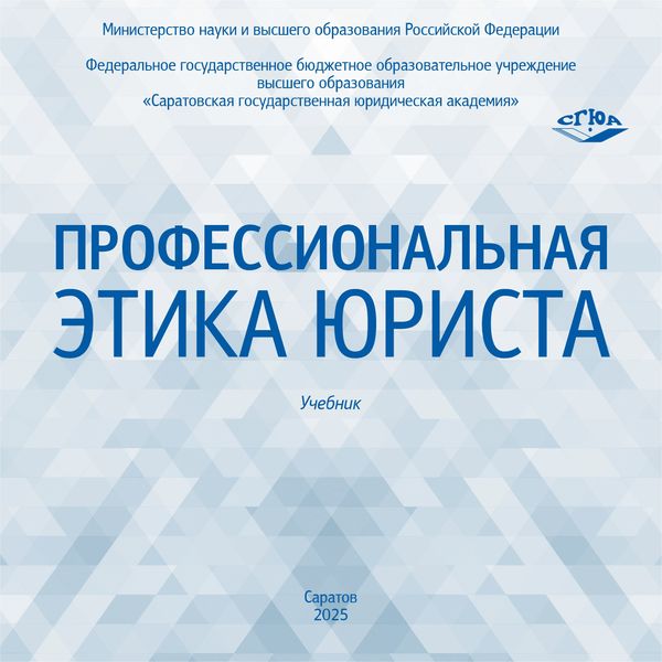 Профессиональная этика юриста : учебник / М. В. Шугуров, О. Н. Жирнов, С. И. Кащеев [и др.]. — Саратов : Издательство Саратовской государственной юридической академии, 2025. — 204 c. — ISBN 978-5-7924-2168-4. — Текст : электронный // Цифровой образовательный ресурс IPR SMART : [сайт]. — URL: https://www.iprbookshop.ru/154829.html (дата обращения: 29.09.2025). — Режим доступа: для авторизир. пользователей
