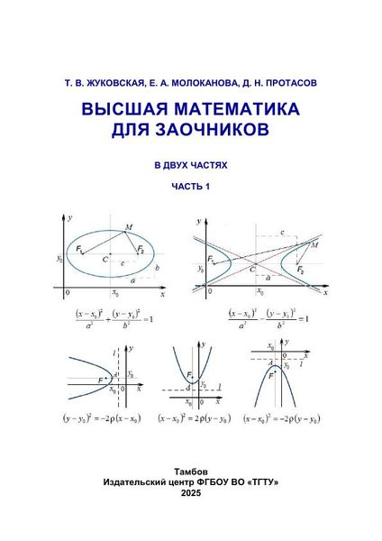 Жуковская, Т. В. Высшая математика для заочников. В 2 частях. Ч.1 : учебное пособие / Т. В. Жуковская, Е. А. Молоканова, Д. Н. Протасов. — Тамбов : Тамбовский государственный технический университет, ЭБС АСВ, 2025. — 113 c. — ISBN 978-5-8265-2894-5, 978-5-8265-2895-2 (ч. 1). — Текст : электронный // Цифровой образовательный ресурс IPR SMART : [сайт]. — URL: https://www.iprbookshop.ru/154948.html (дата обращения: 04.10.2025). — Режим доступа: для авторизир. пользователей