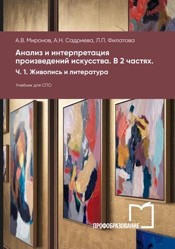 Миронов, А. В. Анализ и интерпретация произведений искусства. В 2 частях. Ч. 1. Живопись и литература : учебник для СПО / А. В. Миронов, А. Н. Садриева, Л. П. Филатова. — Саратов, Москва : Профобразование, Ай Пи Ар Медиа, 2026. — 151 c. — ISBN 978-5-4488-2701-3, 978-5-4497-4903-1. — Текст : электронный // Цифровой образовательный ресурс IPR SMART : [сайт]. — URL: https://www.iprbookshop.ru/155353.html (дата обращения: 14.11.2025). — Режим доступа: для авторизир. пользователей