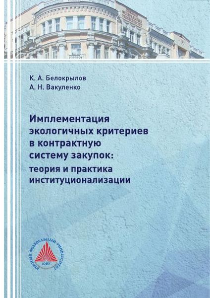 Белокрылов, К. А. Имплементация экологичных критериев в контрактную систему закупок: теория и практика институционализации : монография / К. А. Белокрылов, А. Н. Вакуленко ; под редакцией О. С. Белокрыловой. — Ростов-на-Дону, Таганрог : Издательство Южного федерального университета, 2025. — 144 c. — ISBN 978-5-9275-5002-9. — Текст : электронный // Цифровой образовательный ресурс IPR SMART : [сайт]. — URL: https://www.iprbookshop.ru/155362.html (дата обращения: 16.10.2025). — Режим доступа: для авторизир. пользователей