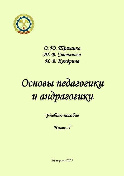 Тришина, О. Ю. Основы педагогики и андрагогики. Ч.1 : учебное пособие / О. Ю. Тришина, И. В. Кондрина, Т. В. Степанова. — Кемерово : Кузбасский государственный технический университет имени Т.Ф. Горбачева, 2025. — 93 c. — ISBN 978-5-00137-510-4. — Текст : электронный // Цифровой образовательный ресурс IPR SMART : [сайт]. — URL: https://www.iprbookshop.ru/155705.html (дата обращения: 23.10.2025). — Режим доступа: для авторизир. пользователей