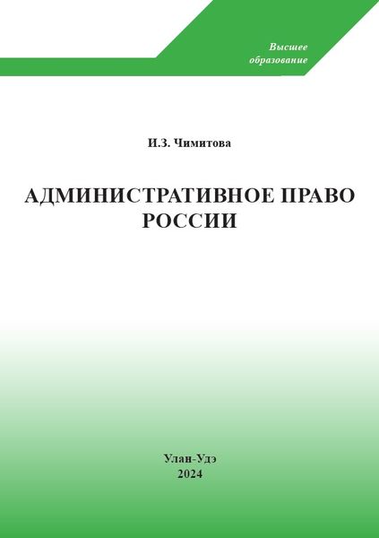 Чимитова, И. З. Административное право России : учебное пособие / И. З. Чимитова. — Улан-Удэ : Бурятская государственная сельскохозяйственная академия им. В.Р. Филиппова, 2024. — 94 c. — Текст : электронный // Цифровой образовательный ресурс IPR SMART : [сайт]. — URL: https://www.iprbookshop.ru/156247.html (дата обращения: 12.11.2025). — Режим доступа: для авторизир. пользователей