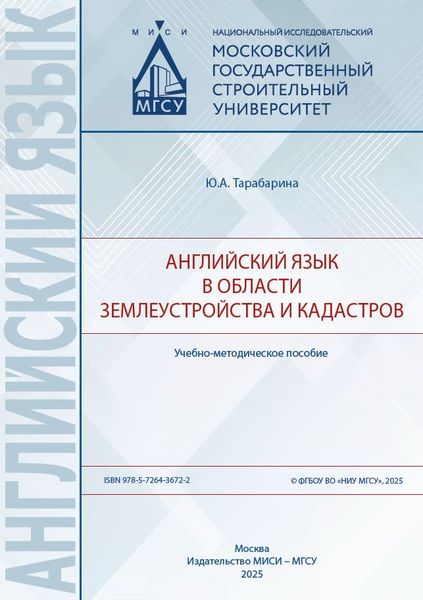 Тарабарина, Ю. А. Английский язык в области землеустройства и кадастров : учебно-методическое пособие / Ю. А. Тарабарина. — Москва : МИСИ-МГСУ, ЭБС АСВ, 2025. — 37 c. — ISBN 978-5-7264-3672-2. — Текст : электронный // Цифровой образовательный ресурс IPR SMART : [сайт]. — URL: https://www.iprbookshop.ru/156542.html (дата обращения: 24.11.2025). — Режим доступа: для авторизир. пользователей
