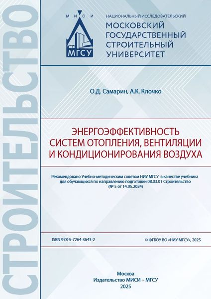 Самарин, О. Д. Энергоэффективность систем отопления, вентиляции и кондиционирования воздуха : учебник для обучающихся по направлению подготовки 08.03.01 Строительство / О. Д. Самарин, А. К. Клочко. — Москва : МИСИ-МГСУ, ЭБС АСВ, 2025. — 120 c. — ISBN 978-5-7264-3643-2. — Текст : электронный // Цифровой образовательный ресурс IPR SMART : [сайт]. — URL: https://www.iprbookshop.ru/156560.html (дата обращения: 24.11.2025). — Режим доступа: для авторизир. пользователей