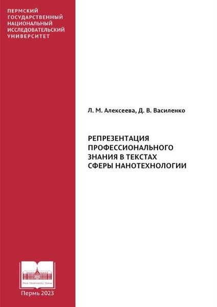 Алексеева, Л. М. Репрезентация профессионального знания в текстах сферы нанотехнологии : монография / Л. М. Алексеева, Д. В. Василенко. — Пермь : Пермский государственный национальный исследовательский университет, 2023. — 190 c. — ISBN 978-5-7944-3989-2. — Текст : электронный // Цифровой образовательный ресурс IPR SMART : [сайт]. — URL: https://www.iprbookshop.ru/157278.html (дата обращения: 12.12.2025). — Режим доступа: для авторизир. пользователей