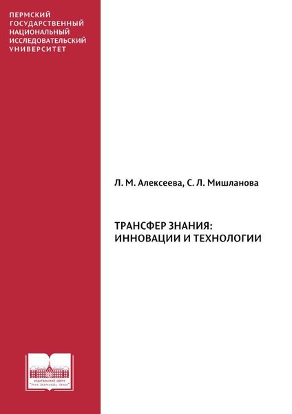 Алексеева, Л. М. Трансфер знания: инновации и технологии : монография / Л. М. Алексеева, С. Л. Мишланова. — Пермь : Пермский государственный национальный исследовательский университет, 2022. — 206 c. — ISBN 978-5-7944-3918-2. — Текст : электронный // Цифровой образовательный ресурс IPR SMART : [сайт]. — URL: https://www.iprbookshop.ru/157281.html (дата обращения: 12.12.2025). — Режим доступа: для авторизир. пользователей