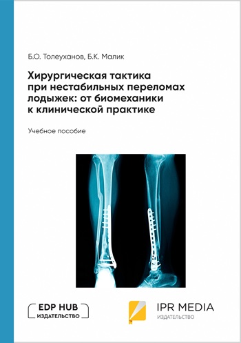 Толеуханов, Б. О. Хирургическая тактика при нестабильных переломах лодыжек: от биомеханики к клинической практике : учебное пособие / Б. О. Толеуханов, Б. К. Малик. — Алматы, Москва : EDP Hub (Идипи Хаб), Ай Пи Ар Медиа, 2026. — 99 c. — ISBN 978-5-4497-5059-4. — Текст : электронный // Цифровой образовательный ресурс IPR SMART : [сайт]. — URL: https://www.iprbookshop.ru/157525.html (дата обращения: 23.01.2026). — Режим доступа: для авторизир. пользователей