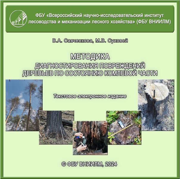 Савченкова, В. А. Методика диагностирования повреждений деревьев по состоянию их комлевой части / В. А. Савченкова, М. В. Суховей. — Пушкино : Всероссийский научно-исследовательский институт лесоводства и механизации лесного хозяйства, 2024. — 54 c. — ISBN 978-5-94219-302-7. — Текст : электронный // Цифровой образовательный ресурс IPR SMART : [сайт]. — URL: https://www.iprbookshop.ru/157626.html (дата обращения: 15.01.2026). — Режим доступа: для авторизир. пользователей