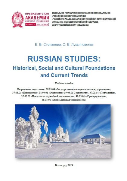 Степанова, Е. В. Russian Studies. Historical, Social and Cultural Foundations and Current Trends : учебное пособие / Е. В. Степанова, О. В. Лукьяновская. — Волгоград : Волгоградский институт управления – филиал РАНХиГС, 2024. — 64 c. — ISBN 978-5-7786-0890-0. — Текст : электронный // Цифровой образовательный ресурс IPR SMART : [сайт]. — URL: https://www.iprbookshop.ru/157919.html (дата обращения: 27.01.2026). — Режим доступа: для авторизир. пользователей