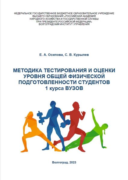 Осипова, Е. А. Методика тестирования и оценки уровня общей физической подготовленности студентов 1 курса вузов : учебно-методическое пособие / Е. А. Осипова, С. В. Курылев. — Волгоград : Волгоградский институт управления – филиал РАНХиГС, 2023. — 32 c. — ISBN 978-5-7786-0878-8. — Текст : электронный // Цифровой образовательный ресурс IPR SMART : [сайт]. — URL: https://www.iprbookshop.ru/157941.html (дата обращения: 27.01.2026). — Режим доступа: для авторизир. пользователей