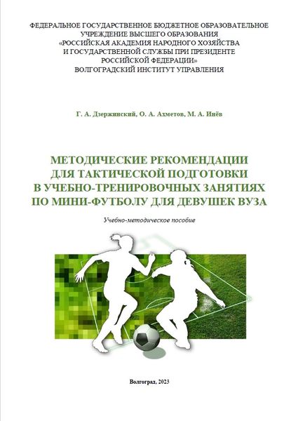 Дзержинский, Г. А. Методические рекомендации для тактической подготовки в учебно-тренировочных занятиях по мини-футболу для девушек вуза : учебно-методическое пособие / Г. А. Дзержинский, О. А. Ахметов, М. А. Инёв. — Волгоград : Волгоградский институт управления – филиал РАНХиГС, 2023. — 32 c. — ISBN 978-5-7786-0880-1. — Текст : электронный // Цифровой образовательный ресурс IPR SMART : [сайт]. — URL: https://www.iprbookshop.ru/157942.html (дата обращения: 27.01.2026). — Режим доступа: для авторизир. пользователей