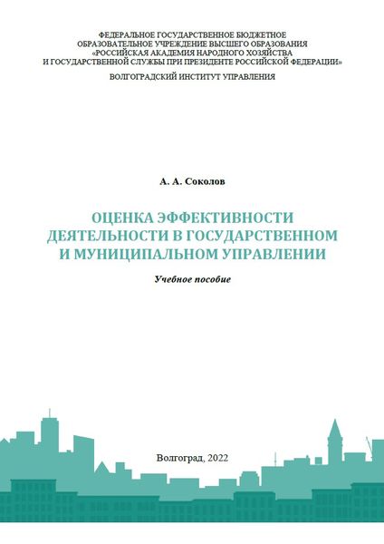 Соколов, А. А. Оценка эффективности деятельности в государственном и муниципальном управлении : учебное пособие / А. А. Соколов. — Волгоград : Волгоградский институт управления – филиал РАНХиГС, 2022. — 32 c. — ISBN 978-5-7786-0863-4. — Текст : электронный // Цифровой образовательный ресурс IPR SMART : [сайт]. — URL: https://www.iprbookshop.ru/157949.html (дата обращения: 27.01.2026). — Режим доступа: для авторизир. пользователей