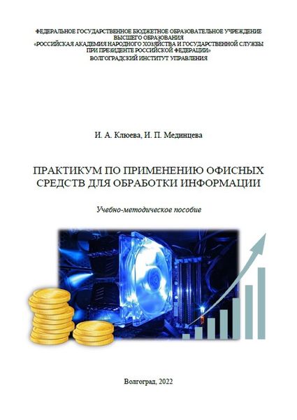 Клюева, И. А. Практикум по применению офисных средств для обработки информации : учебно-методическое пособие / И. А. Клюева, И. П. Мединцева. — Волгоград : Волгоградский институт управления – филиал РАНХиГС, 2022. — 58 c. — ISBN 978-5-7786-0850-4. — Текст : электронный // Цифровой образовательный ресурс IPR SMART : [сайт]. — URL: https://www.iprbookshop.ru/157952.html (дата обращения: 27.01.2026). — Режим доступа: для авторизир. пользователей