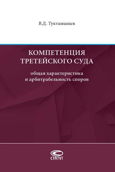 Туктамышев, В. Д. Компетенция третейского суда: общая характеристика и арбитрабельность споров : монография / В. Д. Туктамышев. — Москва : Статут, 2025. — 264 c. — ISBN 978-5-8354-2114-5. — Текст : электронный // Цифровой образовательный ресурс IPR SMART : [сайт]. — URL: https://www.iprbookshop.ru/157978.html (дата обращения: 26.01.2026). — Режим доступа: для авторизир. пользователей