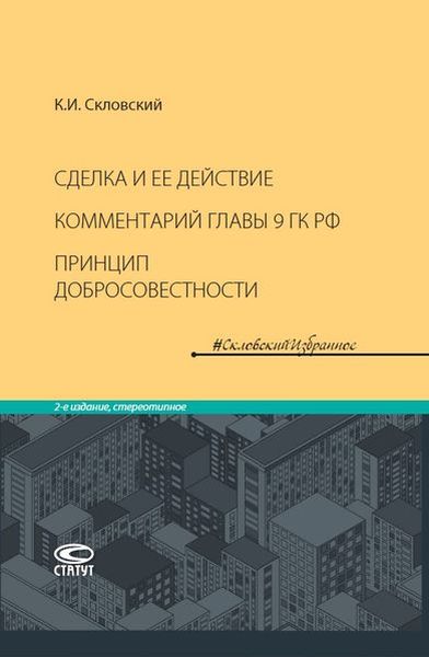 Предлагаемая вниманию читателей книга написана одним из ведущих специалистов в области гражданского права, доктором юридических наук, адвокатом К.И. Скловским. Ранее она уже публиковалась и вызвала значительный интерес. Книга охватывает три связанные между собой темы. Это, прежде всего, очерк о понятии сделки, в котором автор анализирует наиболее важные аспекты понятия сделки и выдвигает ряд новаторских положений, имеющих как теоретическое, так и практическое значение. Здесь воспроизводится четвертое, дополненное издание очерка, которое вошло в первое издание (2019 г.) настоящей книги. В книге также имеется комментарий главы 9 ГК РФ о сделках, в котором была учтена и судебная практика, в том числе постановления Пленума ВС РФ. В комментарии высказан ряд новых принципиальных положений, углубляющих и развивающих понимание новых тенденций в этой важнейшей сфере гражданского права. Наряду с этим в книге помещены статьи автора о применении принципа добросовестности в судебной практике. Эта проблема вышла на передний план в последние годы и требует пристального внимания юристов, так как обнаружилось множество неясных и трудных вопросов, к которым суды не были готовы. Можно сказать, что этот вопрос сегодня один из самых острых. Книга написана ясным, доступным языком. Издание будет представлять интерес как для студентов юридических вузов и ученых, так и для практикующих юристов.