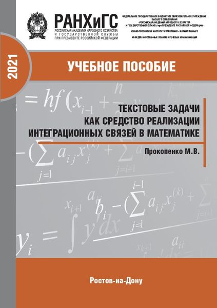 Прокопенко, М. В. Текстовые задачи как средство реализации интеграционных связей в математике : монография / М. В. Прокопенко. — Ростов-на-Дону : Южно-Российский институт управления – филиал РАНХиГС, 2021. — 126 c. — ISBN 978-5-6047680-2-0. — Текст : электронный // Цифровой образовательный ресурс IPR SMART : [сайт]. — URL: https://www.iprbookshop.ru/158213.html (дата обращения: 04.02.2026). — Режим доступа: для авторизир. пользователей