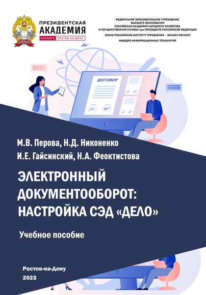 Электронный документооборот: настройка СЭД «Дело» : учебное пособие / М. В. Перова, Н. Д. Никоненко, И. Е. Гайсинский, Н. А. Феоктистова. — Ростов-на-Дону : Южно-Российский институт управления – филиал РАНХиГС, 2023. — 40 c. — ISBN 978-5-6051021-6-8. — Текст : электронный // Цифровой образовательный ресурс IPR SMART : [сайт]. — URL: https://www.iprbookshop.ru/158216.html (дата обращения: 04.02.2026). — Режим доступа: для авторизир. пользователей