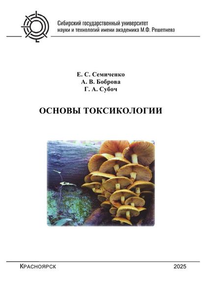Семиченко, Е. С. Основы токсикологии : учебное пособие / Е. С. Семиченко, А. В. Боброва, Г. А. Субоч. — Красноярск : Сибирский государственный университет науки и технологий имени академика М.Ф. Решетнева, 2025. — 128 c. — Текст : электронный // Цифровой образовательный ресурс IPR SMART : [сайт]. — URL: https://www.iprbookshop.ru/158228.html (дата обращения: 05.02.2026). — Режим доступа: для авторизир. пользователей