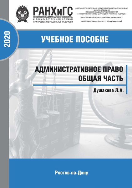 Душакова, Л. А. Административное право. Общая часть : учебно-методическое пособие / Л. А. Душакова. — Ростов-на-Дону : Южно-Российский институт управления – филиал РАНХиГС, 2020. — 112 c. — ISBN 978-5-6042501-1-2. — Текст : электронный // Цифровой образовательный ресурс IPR SMART : [сайт]. — URL: https://www.iprbookshop.ru/158338.html (дата обращения: 11.02.2026). — Режим доступа: для авторизир. пользователей