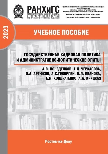 Государственная кадровая политика и административно-политические элиты : учебное пособие / А. В. Понеделков, Т. П. Черкасова, О. А. Артюхин [и др.]. — Ростов-на-Дону : Южно-Российский институт управления – филиал РАНХиГС, 2023. — 151 c. — ISBN 978-5-6047681-2-9. — Текст : электронный // Цифровой образовательный ресурс IPR SMART : [сайт]. — URL: https://www.iprbookshop.ru/158345.html (дата обращения: 11.02.2026). — Режим доступа: для авторизир. пользователей