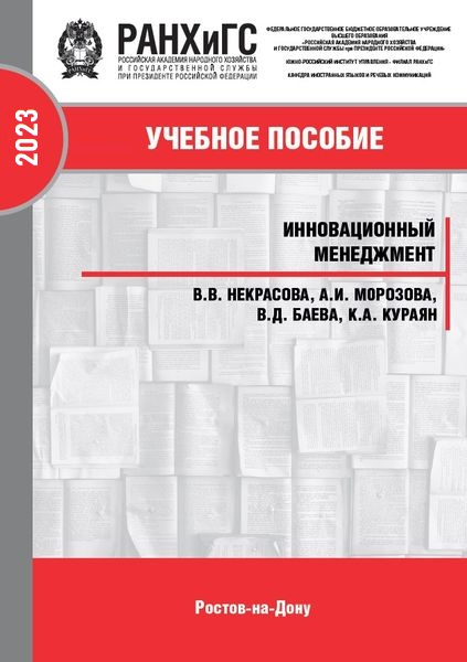 Инновационный менеджмент : учебное пособие / В. В. Некрасова, А. И. Морозова, В. Д. Баева, К. А. Кураян. — Ростов-на-Дону : Южно-Российский институт управления – филиал РАНХиГС, 2023. — 172 c. — ISBN 978-5-6047680-8-2. — Текст : электронный // Цифровой образовательный ресурс IPR SMART : [сайт]. — URL: https://www.iprbookshop.ru/158350.html (дата обращения: 11.02.2026). — Режим доступа: для авторизир. пользователей